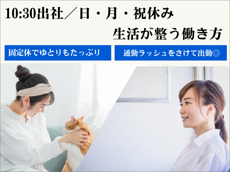 勤務時間 | 固定時間制 勤務時間詳細 実働時間:1日あたり8時間 平均勤務日数:1ヶ月あたり20日 〜 23日 ■10:30~19:30 (休憩1時間00分) *残業少なめ *朝はゆっくりで出勤ラッシュとは無縁! |