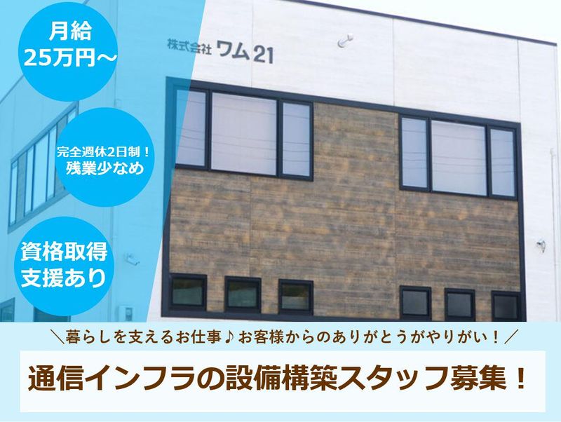 職種/仕事内容 | 仕事内容 \\この求人のポイント// =================== ✅残業少なめ!夜間の仕事なし! ✅2人1組で作業!フォロー体制も◎ ✅資格取得支援◎社員を全力応援! =================== ⭐仕事内容  ̄ ̄V ̄ ̄ ̄ ̄ ̄ ̄ ̄ ̄ ̄ ̄ ̄ ̄ ̄ ̄ ̄ ̄ ◇高齢者施設向けナースコール工事 ◇企業向けビジネスホン工事 └工事は一気通貫のためお客様から 感謝の言葉を頂きやすいです♪ ◇パソコン設定、LAN工事 └システム担当者もいるため、徐々に スキルや経験を積んでいけばOK! ⭐残業少なめ!規則的な勤務時間♪  ̄ ̄V ̄ ̄ ̄ ̄ ̄ ̄ ̄ ̄ ̄ ̄ ̄ ̄ ̄ ̄ ̄ ̄ 基本的に勤務時間内の工事になるため 夜間での工事はありません!また残業も 少なく、メリハリを持って働けます! ⭐チームワークを大切にしています♪  ̄ ̄V ̄ ̄ ̄ ̄ ̄ ̄ ̄ ̄ ̄ ̄ ̄ ̄ ̄ ̄ ̄ ̄ 作業の現場は1人で行く事はなく、 最低でも2人1組となります! そのため、チームワークを大切にしており 出来ないところは全員で補いながらお客様の 通信インフラを構築しています! 今の時代無くてはならない通信インフラに 携われるのでやりがいも◎ ⭐充実の資格取得の支援  ̄ ̄V ̄ ̄ ̄ ̄ ̄ ̄ ̄ ̄ ̄ ̄ ̄ ̄ ̄ ̄ ̄ ̄ 資格取得については会社で全面バックアップ 試験の費用はもちろん、教材費や試験当日の 旅費や昼食代まで経費で負担できます! 「さらにスキルを伸ばしたい」 そんな方にピッタリです! |