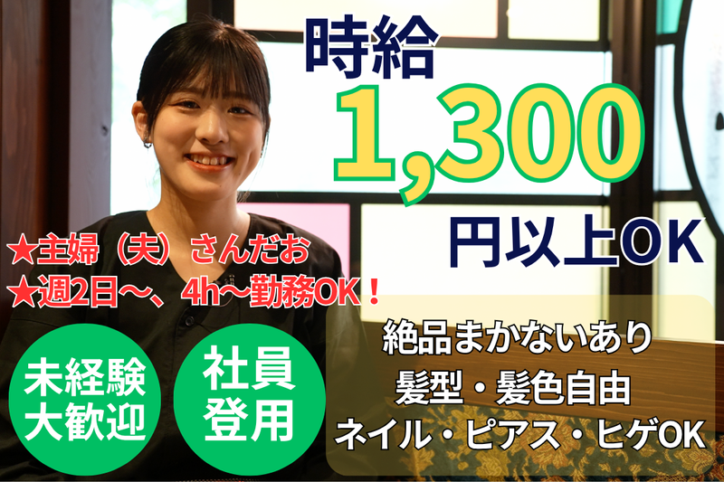 対象となる方 | 求めている人材 \未経験OK!バイトデビューも大歓迎/ <こんな方にぴったりです◎> ◆ 明るく元気に挨拶できる方 ◆ 仲間と一緒に楽しく働きたい方 ◆ 学校やプライベートと両立して働きたい学生さん ◆ ガッツリ稼ぎたいフリーターさん ◆ 家事や育児の合間に働きたい主婦(夫)さん ◆ 飲食や接客に興味がある方、人と話すのが好きな方 ★リファラル採用が多い当社はスタッフ同士の仲も良く、アルバイトさんも一緒に参加できるレクリエーションも多数! 飲食店だけでなく、サービス業の経験がある方も即戦力として活躍できます! |