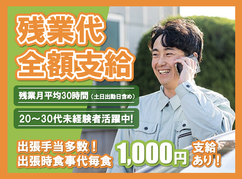 勤務時間 | 固定時間制 勤務時間詳細 総労働時間:1週あたり38時間20分 勤務形態:固定時間制 8:20~17:00(休憩50分) ※月平均残業時間30時間 ✅突然のメンテナンス依頼担当物件の 繁忙期には残業になる可能性あり。 残業代は100%全額支給いたします。 ✅出張費用は原則全額支給 出張手当も別途支給 (食事代1,000円/1食、洗濯代500円、運転手当400円〜2,000円、宿泊費全額会社支給) |