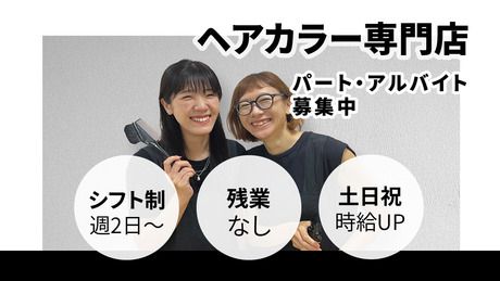 職種/仕事内容 | 仕事内容 <当ヘアサロンについて> 『美容室って、高いし時間もかかる…』…そんな常識を変え、誰もがもっと気軽にキレイを楽しめる。それが私たちの想いです。高品質なヘアカラーを1時間という短時間で、もっと身近に。あなたの技術で、お客様の日常に「いつでも美しい」を届けませんか? ―アピールポイント―――――――― ■がっちりマンデーやnews everyでご紹介!テレビ特集企業! ■カラー専門店なのでカット技術一切不要 ■白髪染め中心で、カラー調合の難易度は低め! ■アシスタント経験のみの方も活躍中! ■研修や練習はシフト時間内で、残業基本なし◎ ――――――――――――――――― 【店舗について】 ・従業員数 3名 ・男女比 全員女性 ・平均年齢 33歳 <カラーリストの主なお仕事> お客様のご希望をお伺いするカウンセリングや カラー剤の調合、塗布、シャンプーを お願いします。 ※カット・パーマ・ブロー等はありません。 ■嬉しいポイント! カラー剤塗布・シャンプー時の手袋着用可、 オートシャンプーで手荒れや腰痛の悩みも軽減! ※導入状況は店舗による ~~~~~~~~~~~~~~~~~~~~~~ <お客様も働くスタッフも満足度高く> ■ミルボンのカラー剤を採用 お客様・スタッフともに安心して使えるものを採用しています ■カラー専門店としてご期待されること 口コミ評価が高い理由の多くは 「仕上がりが良い」「短時間で利用できる」 「適度なコミュニケーション」「手際の良さ」。 ~~~~~~~~~~~~~~~~~~~~~~ <2ヶ月の手厚い研修サポート> 研修や練習はマニュアルに沿いつつ、過去の経験や 個人のレベル感に合わせて進めていくのでご安心ください。 ■トレーニングの流れ(例) スタンバイ→シャンプー→カラー剤塗布→カラー剤調合・・・ 練習では先輩スタッフが練習台になるなど 協力体制バッチリ♪ ~~~~~~~~~~~~~~~~~~~~~~ <スタッフの声> ・せっかく取った美容師免許、 資格を活かして働ける場所があって良かった! ・先輩スタッフにも不安は包み隠さず話せるし、 マネージャーも解決に向けて動いてくれるので相談しやすい ・とにかくスタッフ同士の協力体制がバッチリで 家庭、育児とも両立しやすくてここで働いてよかった! ~~~~~~~~~~~~~~~~~~~~~~ |