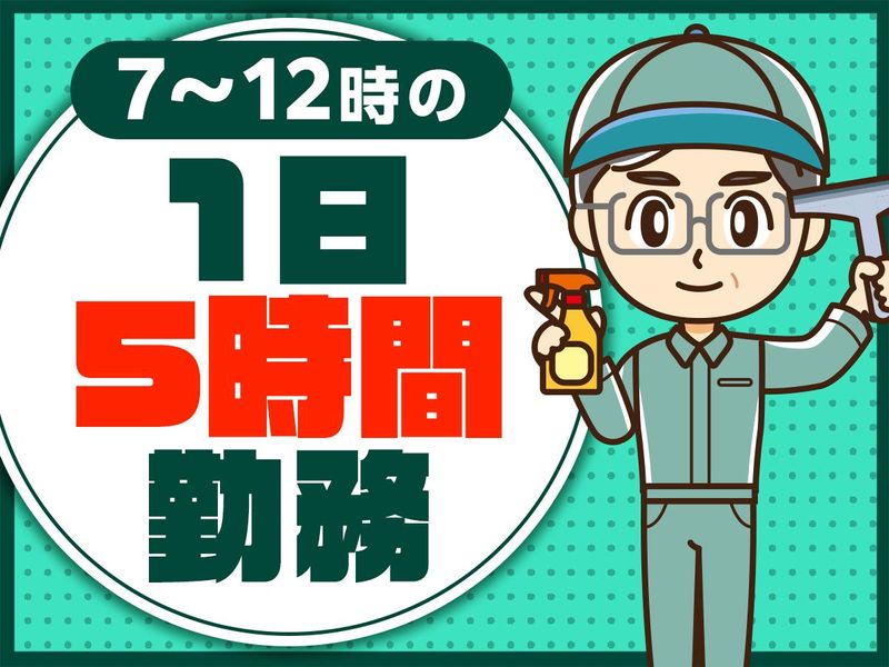 勤務時間 | 固定時間制 勤務時間詳細 7:00~12:00(実働5時間/休憩なし) ※月~金の週5日勤務 |