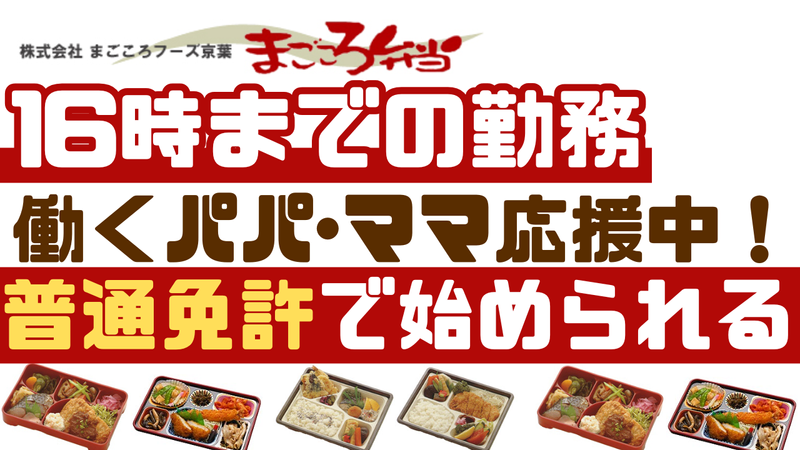 職種/仕事内容 | 仕事内容 【必要なのは普通免許のみ!】 働くママ・パパさんを応援します♪ 16:00までのお仕事で家庭と両立◎ ■仕事内容詳細  ̄ ̄ ̄ ̄ ̄ ̄ ̄ ̄ ̄ ̄ ̄ ̄ ̄ 事前注文いただいた一般企業への お弁当配送と空箱回収をお任せします。 そこまで対客はありませんので 接客に不安を抱いている方もご安心ください。 【午前】お弁当の配送 【午後】空き箱の回収作業 【車種】ハイエース・キャラバン 【配送エリア】千葉市近隣エリアの企業や施設 ・毎日同じルートで安心 ・1日20~30件程度!長距離運転なし! ◤ ̄ ̄ ̄ ̄ ̄☎⋆.✩ ̄ ̄ ̄ ̄◥ お電話でのご応募も歓迎 ℡/043-265-4343 ※営業電話はお控えください ◣____________◢ ■未経験の方も大歓迎‼  ̄ ̄ ̄ ̄ ̄ ̄ ̄ ̄ ̄ ̄ ̄ ̄ ̄ 特別な知識や経験は必要ありません◎ 必要なのは… 【普通免許】のみ! もちろんお弁当屋さんでの勤務経験や ドライバー、配送業務経験のある方は大歓迎 ■16:00までの勤務  ̄ ̄ ̄ ̄ ̄ ̄ ̄ ̄ ̄ ̄ ̄ ̄ 働くパパさんママさんには嬉しい 16:00までの勤務! 「子供のお迎えが・・・」 「晩御飯までには帰りたい」 といった方大歓迎♪ 子育てと両立して働ける職場です! 小学生~大学生のパパ・ママさんが 多数活躍しています!! ■固定ルートで安心!  ̄ ̄ ̄ ̄ ̄ ̄ ̄ ̄ ̄ ̄ ̄ ̄ ̄ ̄ 普段の車の運転の様な距離や 固定ルートなのも安心です☆ 大きい車の運転もないので、 免許を活かして気軽に働けます♪ ルートを覚える必要もなし! ■日替わり弁当あり♪  ̄ ̄ ̄ ̄ ̄ ̄ ̄ ̄ ̄ ̄ 大人気‼大好評の「日替わり弁当」 社割を使った破格”170円”で食べられる! 『節約×美味しい』が叶う 厚待遇がスタッフにも大好評♪ ■年間休日110日♪  ̄ ̄ ̄ ̄ ̄ ̄ ̄ ̄ ̄ ̄ 休みも充実しています! 身体への負担も少なく、私生活も 充実できる環境を整えています! |