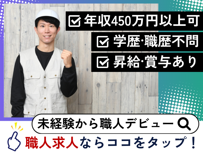 対象となる方 | 求めている人材 学歴・経験・職歴は一切不問! 中卒・高卒の方も大歓迎! 「今の生活を変えたい」 「安定した仕事がしたい」 「手に職をつけたい」 …そんな方、大歓迎です! ✅ 社員のほとんどが未経験スタート ✅ 10代・20代の若手も活躍中 ✅ 体を動かすのが好きならOK |