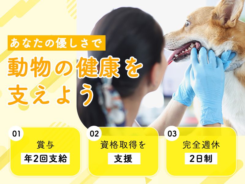 職種/仕事内容 | 仕事内容 *…………*…………*…………* 人にも動物にもやさしい職場で あなたらしく働きませんか? *…………*…………*…………* ↓↓ 求人のPOINTを要チェック ↓↓ *…*…*…*…*…*…*…*…*…* ✨受付・ケアの現場研修あり! →未経験でも安心のスタート◯ ✨完全週休2日制 ✨年2回の賞与あり! ✨資格取得支援制度あり →働きながらスキルアップできる ✨️ゆっくりできる休憩スペース →嬉しいお菓子エリア完備! ✨️髪型・髪色自由!ネイルもOK! << 仕事内容 >> あなたには、受付業務や 保定などの診察サポートをお任せします! 飼い主様や動物たちの不安を和らげ、 スムーズな治療をサポートしましょう! 具体的には… ・手術、診療の準備 ・各種検査 ・預かり動物のケア管理 ほかにも資格を取得するなど、 スキルを身につけることで 採血や留置確保、手術の補助と お任せする業務も増えていきます! *緊急手術時のみ夜勤あり |