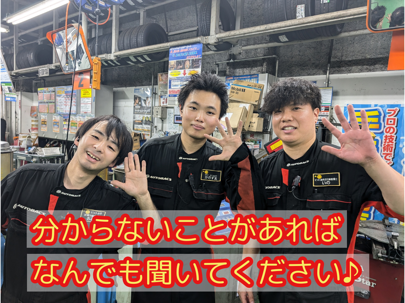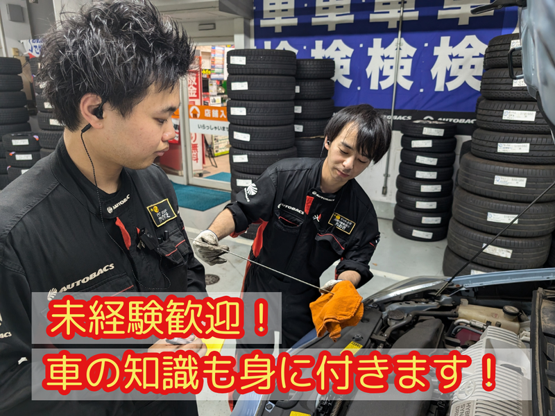 職種/仕事内容 | 仕事内容 整備士の補助や軽作業。 あくまで補助なので安心ください。 車の知識は不要なので未経験も大歓迎! まずは簡単なモノから、 徐々に仕事の内容を覚えていけば 大丈夫なので安心下さいね。 具体的にオイルやタイヤ、 バッテリー、ワイ―パー、 ライト等の交換、取り付け、修理等です。 働きながら車の知識を学べます。 接客作業は殆ど無いので、 コツモク作業好きにはお勧めです。 慣れるまでは先輩が 丁寧に教えるので、 安心してご応募下さい。 社員を目指して未経験から 働いているスタッフ活躍中! |
