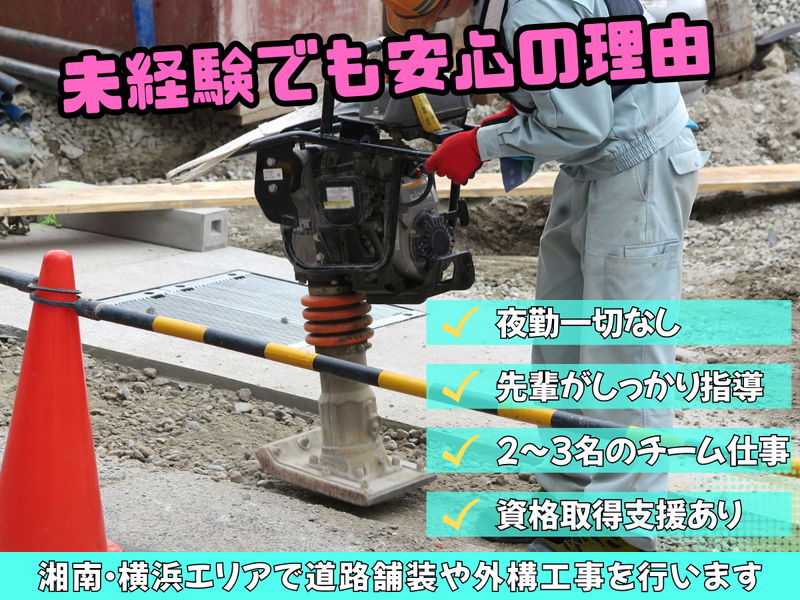 職種/仕事内容 | 仕事内容 \✨この求人のポイント✨/ ✅未経験歓迎!手厚い実務指導あり ✅大手一次請けで仕事量安定◎ ✅寮完備・交通費規定支給! ✅髪型・髪色・ピアス・タトゥー自由 湘南・横浜エリアで道路舗装や外構を 手がける当社で現場作業をお任せします。 最初は先輩の補助作業からスタート! 体力に自信があれば未経験でもOKです。 【仕事内容】 ・資材運搬、片付け、道具の準備 ・穴掘り、路盤整正の補助作業 ・アスファルト敷設の補助業務 ・現場の安全確認や片付け作業 ・機材の簡単な操作補助 ✨現在30~40代を中心に9名が活躍中。 【なぜ未経験でも安心?】 ・夜勤業務は一切なし。 ・先輩が隣について教えるOJT中心 ・現場は2~3名のチーム体制で安心 ・資格取得支援ありでスキルアップ可 - ▼▽▼▽この時点で応募したい!▽▼▽▼ ①電話:08011478445/採用担当宛 まで ②ネット:「応募画面へ進む」をクリック! - ⭐ここだけの魅力は…⭐ 当社の強みは年間単位で 仕事量が豊富な事。 業界トップクラスの 大手道路会社の一次請け。 仕事が途切れないので 安心して働けます。 土木・舗装・外構・設備工事 など幅広く仕事があり 技術も学べます。 当社は日本トップクラスの 大手道路会社と直接取引をしており、 湘南エリア・横浜エリアの 仕事を任されています。 年間単位での案件を 契約しているので、ここ数年 仕事が途切れたことはありません。 |