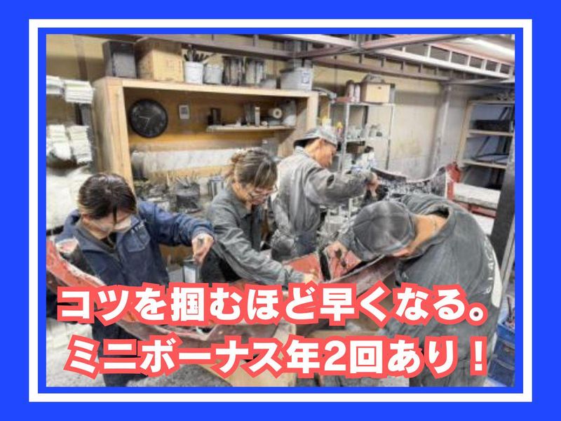 職種/仕事内容 | 仕事内容 【ここがPOINT!】 ✅未経験OK|簡単な製作サポートからスタート ✅週2日~・1日3時間~勤務OK ✅フルタイム・時短どちらも相談OK! ✅時給1200円+ミニボーナス年2回(業績による) ✅車・バイク通勤OK|ガソリン代含む交通費支給 ✅主婦(夫)さん活躍中|急なお休みも相談しやすい ✅少人数で人間関係◎|社員がすぐそばでフォロー \工場だけど、流れ作業じゃありません/ 当社は、車のバンパーやナンバープレート、 ヘッドライト周りのパーツなどを 一つひとつ手作業で仕上げる製造工場です。 製品が完成するまでの「製造・仕上げ」や 「検品・梱包」のサポートをしていただきます! ただの軽作業ではなく、 “製造の一部を担っている実感”が持てる仕事です◎ 【この仕事の面白さ✨】 ✅完成品が目に見えて分かる! ✅同じ作業でも、コツを掴むとスピードが上がる! ✅「自分が仕上げたパーツ」が世に出る 【具体的なお仕事の流れ】 1つのパーツができるまでには、いくつかの工程があります。 その中で、以下のサポート作業をメインにお願いします! <空気抜き(脱泡)> 樹脂と硬化剤を混ぜたものを塗り込み、 ローラーを転がして気泡を抜いていきます。 <やすり掛け> やすりで切断部を整えます。 少しずつ綺麗になっていくのが実感できて、達成感がありますよ! <検品・梱包> 最後の大事な仕上げです。 完成したパーツをチェックし、発送用に梱包します。 【職場環境について】 社員4名+アルバイト3名の少人数体制。 現場には必ず社員がいるので、 分からないことはその場で確認できます。 少人数だからこそ、 声をかけ合いながら作業を進めています。 黙々と作業する時間と 必要なコミュニケーションのバランスが良く、 人間関係で消耗しにくい環境です。 男性スタッフが多数活躍中ですが、 女性アルバイトも3名活躍中! 「重いし大変そう…」というイメージがあるかもしれませんが、 男性も女性もコツコツと輝ける職場です◎ 【8 Factoryについて】 車のエアロパーツを主に製造していますが、 ニーズに応じて強化プラスチックの造形物なら幅広く製造。 実はジェットコースターの椅子も私達の作品です! 造形物のクオリティの高さは京都では有名◎ エアロパーツを依頼される自動車会社から 厚い信頼を頂き業績も右肩あがりです! |