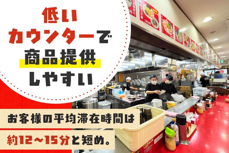職場環境・雰囲気 | 職場環境 カウンター席のみの店舗に、 アルバイト6名に 社員4〜5名を常時配置。 人員に余裕があるので、 1人あたりの業務は少なく、 実はかなり働きやすい環境です! 喫煙所:喫煙所あり(屋外) |