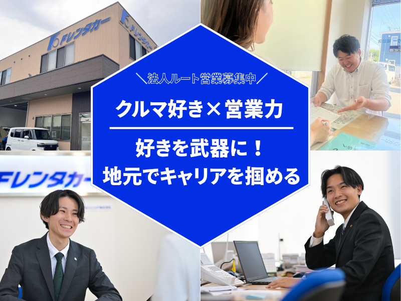 対象となる方 | 求めている人材 ・営業未経験・業界未経験大歓迎 ・普通自動車運転免許(AT限定可) ・未経験OK!学歴・経験不問 <こんな方にピッタリ> ・地元で働きたい。 ・Uターン・Iターン希望の方 ・異業種で働いてみたい ・車や運転が好き ・人と接するのが好き ・ルーチンより動きのある仕事がしたい ・安定企業で長く働きたい ・早期キャリアアップを目指したい <社員インタビュー> Aさん(26歳・中途1年目) 前職:製造業(派遣社員) 地元で働きたくて、県外転勤なしの Fレンタカーを選びました。 先輩と温泉やサウナに行くことも。 優しい人ばかりで、仕事も私生活も 相談しやすい職場です! - Bさん(30歳・中途3年目) 前職:製造ライン作業 人と話すのが好きで、職場にも すぐ馴染めました。 休日と給与が魅力で入社。 20〜30代が多く、雰囲気も明るく 新人も安心して働けます! - Cさん(30歳・中途1年目) 前職:電気工事の施工管理 転勤・出張・休みの少なさが 前職の悩みでした。 ここは休みも多く、地元で働けて 希望通り!高級車にも触れられ、 毎日楽しく働けています。 年齢の条件と理由:あり(例外事由3号のイ・35歳未満(長期勤続によるキャリア形成のため)) |