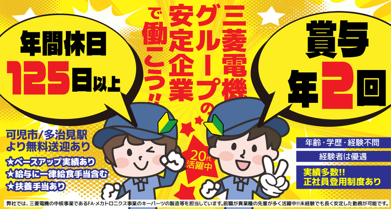 職種/仕事内容 | 仕事内容 【未経験OK!年齢・学歴・経験不問!】 三菱電機工場内で生産準備業務をお願いします。 ◆具体的には◆ ・基準情報のインプット作業 ・各種書類作成 ・現場への図面および部品供給 ※重量物の運搬あり ・システムでの部品手配業務 ・納期フォロー など 【名菱テクニカについて】 当社は三菱電機の中核事業、FA・メカトロニクス事業のキーパーツの製造等を担当する名古屋製作所のモノづくりパートナーとして安定した業績を誇る会社です。 ✅より詳しく知りたい方は動画をチェック! https://www.youtube.com/watch?v=-kE2Gxu5RbY ★多治見駅から無料送迎バスあり! |