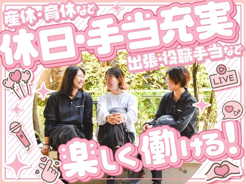 待遇・福利厚生 | 【保険制度】 雇用保険、労災保険、健康保険、厚生年金 【福利厚生】 待遇・福利厚生 【福利厚生】 ・昇給 ・賞与 ・交通費全額支給 ・資格取得支援 ・作業着貸与 ・社内イベント (BBQ、忘年会など) ・レクリエーション (野球大会、フットサル大会など) *** 【 ★嬉しいポイント★ 】 ▶資格取得費用は会社全額負担! 仕事に必要な資格取得は 全力で応援します! ▶産前産後・育児休暇あり! ライフステージが変わっても 長く続けられる環境を整えています。 |