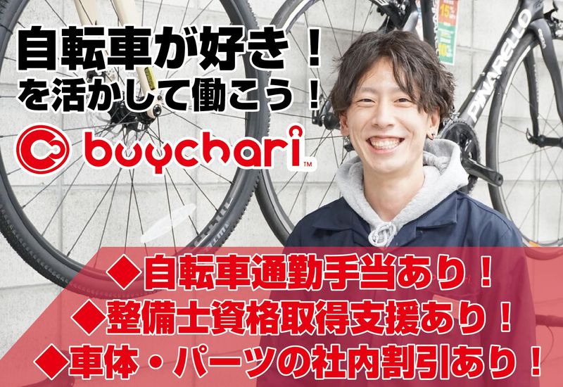 職種/仕事内容 | 仕事内容 【新着】自転車の買取・販売スタッフ \未経験者歓迎!/ ˚✧₊⁎ ⁎⁺˳✧༚˚✧₊⁎ ⁎⁺˳✧༚˚✧₊⁎ ⁎⁺˳✧༚ ☆お休み調整可&有休取得率62.7%! ☆ほぼ残業なし!(ほぼ全員が定時退社) ☆社員割引あり! ☆引越し費用補助あり! ˚✧₊⁎ ⁎⁺˳✧༚˚✧₊⁎ ⁎⁺˳✧༚˚✧₊⁎ ⁎⁺˳✧༚ 《お仕事の詳細》 ・スポーツ自転車の販売・買取 ・自転車のメンテナンス・クリーニング ・ネット(ECサイト)への出品作業 ・梱包発送作業 *ECサイトと実店舗の対応件数は 一日あたり平均して15件ずつ、合計30件程度です。 《社員に聞いた!面接の印象》 身構えていましたが、履歴書に書いていた趣味や 興味のあることを聞いてくれ、楽しかったです。 面接官の方から景色がきれいなおすすめの 自転車スポットも教えてもらったのも思い出です!笑 (入社3年目Kさん) こっちが不安になるくらいフレンドリーで、 面接、というよりは会話でしたね。 それくらい風通しがいいのも魅力だと思います。 リラックスして、気負わずに行くといいですよ! (入社7年目Yさん) ⇒社員インタビュー動画! https://youtu.be/CWITot-qaqA?feature=shared 《当社の紹介》 2013年に設立した「バイチャリ」。 「自転車の、次のあたりまえを作る」 を理念にした確かな実力と誠実さで、 買取販売流通額・店舗数を年々拡大。 現在では日本最大級の 自転車リユースショップとなりました。 これからも成長を続ける 当社の最前線で働きませんか! 《未経験歓迎、やる気があれば昇格可能!》 マニュアル完備で1から学んでいける環境で、 目標に向かっていく姿勢を重要視。 その他にも、効率化・新たな提案など、 あなたのアイデアもしっかりと評価! 自分らしさと能力を存分に発揮してください! 「やる気」次第でステップアップ可能です! 《公式SNSでもっと詳しく!》 ・社員インタビュー: https://chari.cc/INTERVIEWS ・公式Instagram: https://www.instagram.com/buychari_official |