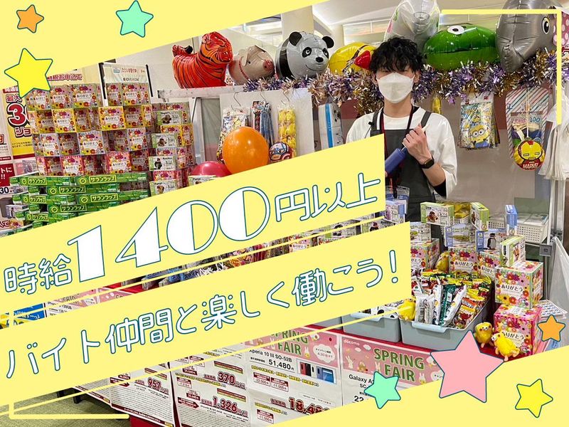 職種/仕事内容 | 仕事内容 +⌒+⌒+⌒+⌒+⌒+⌒+⌒+⌒+⌒+ ◆髪色が明るい方は、落ち着いた髪色に していただく必要がございます。 「文化祭みたいな盛り上がり!!」 「バイト仲間は皆友達!!」 「何より働いていてたのしい!!!」 スタッフから嬉しいお声がたくさん♪ お金もしっかり稼ぎながら、 就活で役立つスキルも身につく! 大学生さん※必見※のオシゴトです✨ ✅未経験の方でも大歓迎! ✅高時給1400円以上! ✅最大時給2000円も可能★ ✅Wワーク・副業OK! ✅友達との応募も歓迎! ✅ゆくゆくは正社員も目指せます! ✅バイトメンバーの仲の良さも抜群! +⌒+⌒+⌒+⌒+⌒+⌒+⌒+⌒+⌒+ ショッピングモールなどの イベント会場や量販店での 呼び込み・販売のお仕事になります! ↓↓↓↓ 覚えることはほとんどありません!! 学力・学歴はいりません!! 成果が上げられるようになったら どんどん昇給していきます!! イベントスタッフとして ぜひ、現場を盛り上げてください♪ _________________ ◆◆ 具体的な仕事内容は… ◆◆  ̄ ̄ ̄ ̄V ̄ ̄ ̄ ̄ ̄ ̄ ̄ ̄ ̄ ̄ ̄ ̄ イベントに参加いただけるように ティッシュを配って声掛けをしたり、 ご来店されたお客様には景品を配ったり、 ガラポンを回していただくように 呼び込みをお願いします♪ イベントは、ビンゴ大会やガチャガチャ、 ガラガライベントなど多岐に渡ります♪ 子ども達の喜ぶ顔をたくさん見られ、 お母さん方にも喜ばれて、 ほっこりした気持ちで働けますよ♪ マニュアルもご用意しているので ご安心くださいね! / ココで働くうちに… \ ⭐コミュニケーション力・営業力も向上! 就活の際にも武器になりますよ♪ ⭐バイト仲間も大勢いるので 新しい友だちがたくさんできます! ⭐いろんな会社の携帯のプランに 詳しくなれるので私用の携帯料金も 最適なプランを選べます! * ゜*+:。:+* ゜*+:。:+* ゜*+:。:+* ゜* |