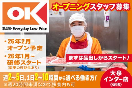 職種/仕事内容 | 仕事内容 【 お仕事内容 】 ★朝の時間を有効活用! ★午前だけ・短時間勤務! ★扶養内OK/ブランク歓迎! 【おしごと内容はこちら】 ・食品のパック詰め ・値段シールを貼る(専用の機械を使うのでカンタン♪) ・商品を棚に並べる「品出し」作業 ・慣れてきたら、野菜のカットや盛り付けなど簡単な加工も◎ どの作業もシンプル&接客少なめだから、 「久しぶりのお仕事復帰」や 「朝だけちょこっと働きたい」方にもぴったり! 「午後はゆっくり自分の時間にしたい」 「家事の合間にちょっと働きたい」 そんなライフスタイルにフィットする、 働きやすいお仕事です◎ 【 オーケーの魅力♪ 】 ■仕事終わりにそのまま買い物できる♪ 「時間も手間も節約できて助かる!」 という声が多数届いています! ■自分のスタイルに合わせて 週2~5日でムリなく働ける! 家事や育児、プライベートと 両立しやすい働き方が可能です! 「家庭優先で働きたい」 「久しぶりの職場復帰で少しずつ始めたい」 そんな方にもピッタリです! ■ゆとりある人員配置で安心 1店舗あたり社員さんが18~19名いるので わからないこともすぐに相談できて安心♪ 業界的にも社員数が多い職場だから、 とっても心強いですよ! 【 しっかりした研修あり 】 \\2026年1月から研修スタート!// 新店オープンに向けて、 しっかり準備ができる体制が整っています! <事前研修あり> ・他店舗での“お試し勤務”で現場を体感! ・合同研修で仲間と一緒に学べる♪ ⇒既存店舗で、仕事のやり方やルールまわりなど 基礎から実践までじっくり身につけられます! < オープン後のサポートも充実> ・経験豊富な社員がしっかりサポート! ・分からないことも、すぐに聞ける環境◎ ⇒オープン初日から1人にさせない安心の職場です♪ 【 大泉インター店へのアクセス詳細 】 <バスの場合> 国際興業バス「比丘尼橋」下車、徒歩1分 ・地下鉄成増駅から乗車の場合 「成増駅南口」バス停から14分 ※平日は1時間に5本~6本 休日は1時間に4本~5本 ・石神井公園駅から乗車の場合 「石神井公園駅北口」バス停から15分 ※平日は1時間に4本~6本 休日は1時間に3本~5本 <徒歩の場合> 西武池袋線「大泉学園駅」から徒歩25分! 西武池袋線「大泉学園駅」北口を出て グランエミオさん手前のエスカレーターを降ります。 そのまま東急リバブルさん方面へ直進し、 交差点を右に渡ります。 靴流通センターさんを通り過ぎ、1つ目の路地を左折。 すぐに右折し、道なりに進むとT・ジョイさんが見えてきます。 T・ジョイさんを過ぎ直進し 大通りに出ると左手にお店があります。 ※自転車通勤応相談 【 勤務形態について 】 この求人はアシスタントパートナー社員の募集です! アシスタントパートナー社員とは? アルバイト・パートとして、週20時間未満で働く 扶養内勤務可能な勤務形態です! ※アシスタントパートナー社員以外には パートナー社員という働き方もあります。 社会保険に加入でき、週20時間以上働く勤務形態です。 週40時間のフルタイム勤務など 契約社員のような働き方も可能です。 |