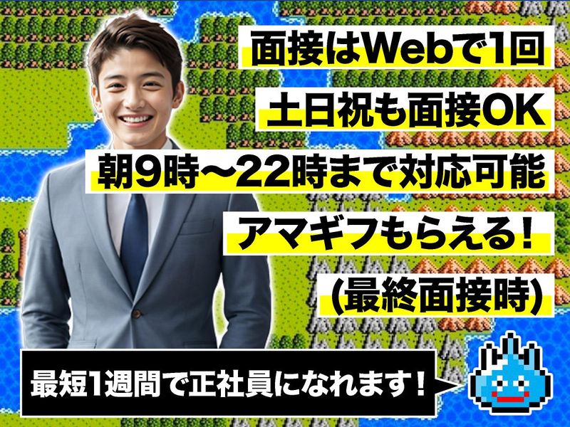 対象となる方 | 求めている人材 特別なスキルや知識はいりません。 今いる先輩たちも、 ほとんどが未経験からのスタートでした! ◎こんな方なら、きっと向いてます ・ゲームが好き! ・SNSを日常的に使っている ・電子マネーやアプリ決済をよく使う ◎こんな経験がある方は歓迎! ・カフェやアパレルなどの接客経験 ・事務・オフィスワークの経験 ・電話や来客対応をしていた事がある ・Excel・Wordなどの基本操作ができる 先輩の前職はさまざま。 アパレル、飲食、観光、事務、営業、不動産、企画、経理、製造、フリーターまで… いろんな背景を持つ仲間たちが、 今ではITの世界で活躍しています! 「やってみたい」という気持ちがあれば、しっかりサポートします。 |