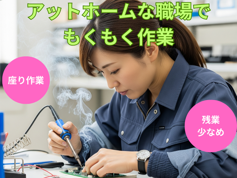 職種/仕事内容 | 仕事内容 機械(マウンター)のオペレーター業務をお願いします。 【具体的な作業】 ①機械に小さな部品をセットする。 ②電子部品を補充・交換する。 ③機械で装着できない部材はピンセットで取り付ける。 ④入荷した部品を種類ごとに分ける。 【お仕事のポイント】 ★空調完備! ★立ち作業と座り作業は半分ずつほどです♪ ★男女比は男性4割:女性6割です。 ★服装は現場で作業着を羽織るだけで着替えラクラク! ★JUKI製マウンターを使用します! |
