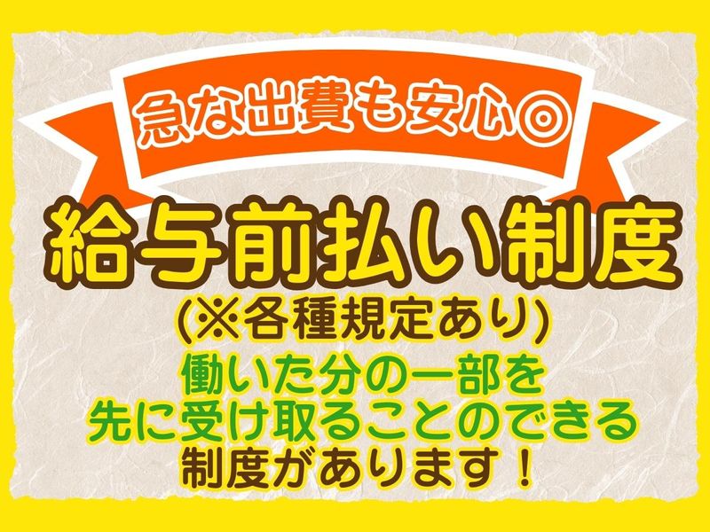 待遇・福利厚生 | 【保険制度】 雇用保険、労災保険、健康保険、厚生年金 【福利厚生】 待遇・福利厚生 【福利厚生】 ・昇給あり ・給与稼働分前払制度あり/規定 ・交通費規定支給 ・有給休暇あり ・社割あり ・制服貸与 ・社会保険完備 ・社員登用制度あり |