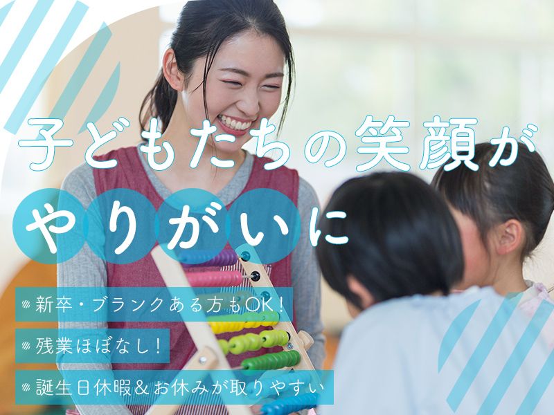 対象となる方 | 必要資格・経験 <必須> ・保育士免許 <歓迎> ・保育の仕事を楽しめる方 ・幼稚園教諭 <応募のPOINT> ・未経験者歓迎 ・経験者歓迎 ・ブランクOK ・有資格者歓迎 ・新卒・第二新卒歓迎 ・40代以上応募可 |