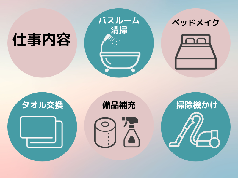 職場環境・雰囲気 | 職場環境 \黙々作業で気疲れゼロ/ チェックアウト後の客室清掃のため、 お客様の対応はなし! 人と話すのが苦手な方や、 黙々と働きたい方にもぴったりです◎ 作業は基本1人! 「人間関係が心配…」という方もご安心ください♪ 喫煙所:喫煙所あり(屋外) |