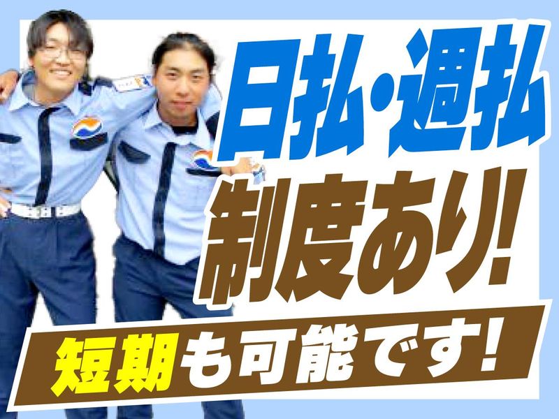 職種/仕事内容 | 仕事内容 ================= スキマ時間を有効活用で収入ゲット☆ 週1日からでも勤務OKなので、 Wワークや副業にもぴったり! 万全のフォロー体制で 未経験でも安心スタート♪ ================== ▽仕事内容 ―――――――――――――――――― 道路や建築現場、イベント会場で ・交通誘導 ・歩行者誘導 ・駐車場警備、駐車場管理 など警備のお仕事をお任せします。 ※みんなで乗り合わせて 現場まで向かうことが多いです。 (事務所は法界院駅より徒歩3分) 場所によっては 現場まで直行直帰も可能! ▽未経験も安心スタート ―――――――――――――――――― まずは10日間の会社研修から。 先輩と2人1組で現場に入り 業務の流れをつかんで頂きます。 マンツーマンの手厚い研修、 丁寧なフォローでしっかり学べます。 質問もすぐにできる環境で、 未経験スタートも安心! |