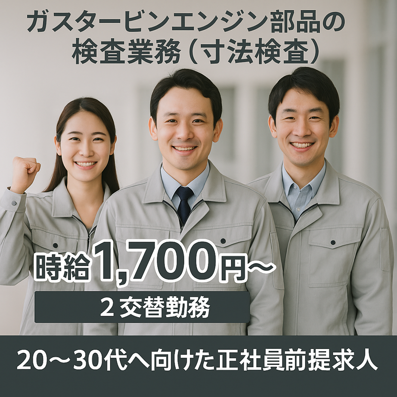 職種/仕事内容 | 仕事内容 \未経験から“航空・船舶の世界”へ!/ エンジン部品の検査スタッフ募集 飛行機・船・鉄道・バイクなど… “社会インフラを支えるグローバル大手企業”で働けるチャンス! 日本を代表する大企業で、正社員登用前提の安心スタート。 「手に職つけたい」「安定した会社で働きたい」 そんな20代・30代・40代の方にぴったりのお仕事です♪ ――――――――――――――――― ✨ 未経験歓迎!研修充実で安心デビュー ✨ 年間休日125日&土日休みでワークライフバランス◎ ✨ JR西明石駅から徒歩7分の通いやすさ ✨ 男女問わず活躍できる軽作業メイン 【仕事内容】 飛行機や船に使われるエンジン部品の検査をお任せします。 ものづくりの“要(かなめ)”となる、大切な工程です。 <具体的には…> ・自動計測装置で寸法チェック ・外観の目視検査 自動装置が測定してくれるので、 あなたは部品を正しくセットするだけでOK! 扱う部品は直径2~30cmほどで、 航空機部品でも女性が扱える重さなので安心です。 【ここが若手に人気!】 ✅入社後しばらくは日勤で無理なくスタート ✅“どう作られていくのか”がわかるからものづくりの面白さを実感 ✅温度が一定の室内環境で、夏も冬も快適に働ける! ✅給茶機あり/飲み物でホッと一息 ✅BBQや飲み会など交流もあるけど、参加は自由で強制ナシ →自分のペースで馴染めますよ♪ 【こんな人におすすめ】 ✅安定した企業で長く働きたい ✅製造・品質チェックに興味がある ✅未経験から工場デビューしたい ✅コツコツ作業が得意 ✅男女問わず、軽作業で無理なく働きたい 若いうちから、 大手企業で“ものづくりの世界”に飛び込んでみませんか? 未経験からでもしっかり成長できる環境が整っています! 【正社員登用が前提の採用です!】 社員の割合として、正社員で入社した方と 途中で正社員登用された方は半々くらい。 未経験からスタートし正社員登用された方も、 班長や職場長へとキャリアアップした 実績もあります。 将来を見据えて長く働きたい方にとって、 着実に成長できる環境です。 <<お電話でのご応募も大歓迎!>> お気軽にお問い合わせください。 「話だけ聞いてみたい」という方も お電話お待ちしています! TEL:078-939-9077 ――――――――――――――――― 求人管理No./FA000003A 【 F.Assistで働くメリット 】 *未経験者歓迎 未経験からスタートしているスタッフが多く、 担当者による丁寧なフォロー体制があります。 *働き方 長期・短期、日勤・交替制など、ご希望に合わせた お仕事探しをサポートできます。 *高時給・高収入 安定して稼げる案件が多くあります。 *面接の柔軟性 平日夕方以降や土日もWEB面接に対応しております。 *地域密着型 兵庫県内の企業と多数連携しており、 希望のエリアでの就業が見つけやすい。 |