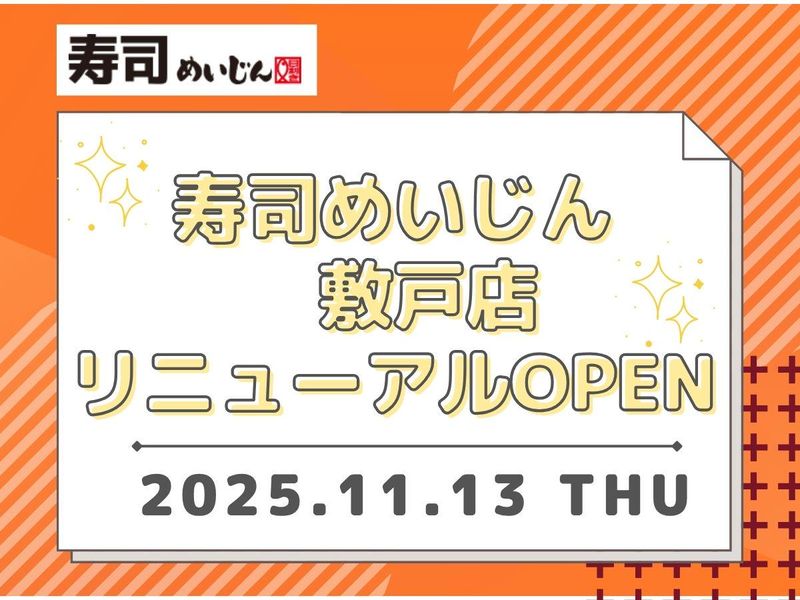 職種/仕事内容 | 仕事内容 ╭━━━━━━━━━━━━━━╮ ⭐11/13リニューアルオープン⭐ ⭐ 寿司めいじん敷戸店 ⭐ ╰━v━━━━━━━━━━━━╯ +・+・+・+・+・+・+・+・+・+ ✅2ヶ月程度の短期OK! ✅1日3時間~、週2日~勤務OK! ✅シフトは1週間毎の作成! ✅プライベートも充実させながら働ける♪ ✅土日は嬉しい時給UP!! ✅髪型髪色自由でオシャレを諦めないで 働けます +・+・+・+・+・+・+・+・+・+ ================ ☆大分/地元めいじんグループ!☆ ★働くを楽しむ!特典イロイロ★ ================ ◎出勤スタンプラリー 働いてポイントが貯まると、 お食事券プレゼント♪ ◎大入り制度 その日の売り上げ目標達成で 500円支給!(※5h以上勤務) ◎長期勤務でミニボーナス2回 3ヶ月勤務後 5,000円 6ヶ月勤務後 5,000円 ◎友達紹介制度 友達を紹介して勤務3ヶ月経過すると 賞金を支給★ ◎交通費規定支給 月額上限1万円 ◎社員割引あり グループの温泉施設にて平日入浴半額 食事代金10~15%OFF ================ 【 仕事内容 】 ~~~~~~~~~~~ <ホール業務> 〇ご案内 〇料理・ドリンクの提供 〇片付け 〇お会計 *タッチパネルオーダーで楽チン! <キッチン業務> 〇調理補助 〇仕込み 〇盛り付け 〇洗い物・清掃 寿司店で初めて働くという方でも、 安心して働くことができるように 一つ一つ丁寧に指導します♪ 〈 こだわり抜いた食材を使用 〉 ・朝〆鮮魚 大分市場にてプロが目利きした 朝〆鮮魚のみを厳選仕入れ! ・生簀活魚 回転寿司では他に類を見ない活魚寿司! 活きアジを中心にブリにヒラメに 真鯛にアワビなどをご提供! ・自家製玉子焼 完全無添加で化学調味料・保存料を 一切使わない安心・安全のこだわりの逸品! ・銀シャリ 大分県の契約農家より直送された県産米を使用! 【 寿司めいじん 】 _______________ 大分県全域に展開する『寿司めいじん』!! 厳選したこだわりの逸品をお客様へご提供! 確かな技術と鮮度、斬新な企画力から 生まれる商品が魅力です<゜)))彡 |