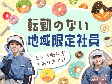 職種/仕事内容 | 仕事内容 ドーナツ作りの「プロ」を目指せる! まずは、基本のドーナツ販売・製造から業務開始! マニュアル完備&先輩がマンツーマンで指導するので、 未経験の方も安心してご応募ください。 1つずつできることを増やしていきましょう♪ 【販売業務】 ・カウンターでの注文対応 ・レジ操作 ・ドーナツの箱詰め ・ドリンク作り ・店内の清掃 【製造業務】 ・ドーナツの生地作り ・ドーナツの形成 ・焼き上げ ・厨房の清掃 <入社後の流れ> ミスタードーナツの基礎知識から、 さまざまな飲食業態を学べる研修をご用意。 もちろん、配属店舗ではOJTでもしっかりサポートします! <慣れてきたらステップアップ!> ・材料の発注、在庫管理 ・アルバイトスタッフの教育 ・店舗の売上管理 など、お店の中心メンバーとして活躍できます。 経験よりも「やってみたい!」という気持ちを大切に ◎意欲重視の採用 ◎やる気と頑張りは給与にしっかり還元 ◎入社1年以内の昇格実績あり ◎未経験から店長になった先輩も! 「お店を盛り上げたい」意識がある方、大歓迎! お店の雰囲気はスタッフ次第。 お客様にもスタッフにも明るい対応で、 雰囲気の良いお店づくりを心掛けられる方を歓迎します。 無理なく続けられる安定基盤 \長期休暇あり/ ★年末年始休暇(3日) ★夏季休暇(3日) \適度に働きながらしっかり稼げる環境/ ★昇給(年1回)あり ★賞与年3回/業績により決算賞与あり ★報奨金あり ★勤続手当あり ★月の残業時間:飲食では少なめの20時間未満 地域社会に貢献しながらステップアップ◎ \山陰エリアでフランチャイズ16店舗を展開中/ 全ての店舗で10代~50代の幅広い世代のスタッフが活躍中! 飲食未経験のスタッフも多数◎ 多様な業態で培ったノウハウがある当社だからこそ、 意欲があれば未経験からスピード出世も可能です。 |