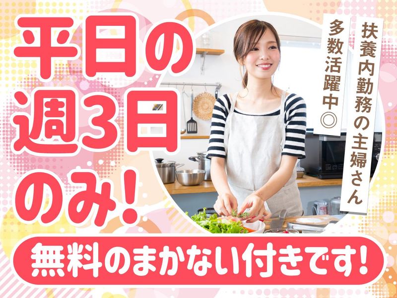 職種/仕事内容 | 仕事内容 **平日のお昼間週3~OK!** **家事や育児との両立応援** **嬉しい無料まかない付き** 日清食品研究所の職員さん達の 健康を支える食堂スタッフ大募集! 【お仕事内容】 ・食材の盛り付けや野菜のカット、加熱 ・カウンターからの食事提供 ・洗浄・清掃など *家事の延長でできる簡単な作業です◎ ・レシピ通りに作っていくだけなので 調理スキルが不安な方もご安心ください! ・家事・育児経験が役立ちます! 主婦さんが多数活躍中◎ 【お客様は、毎日顔を合わせる社員の方々】 8~9名のスタッフで 協力して日々の食事を提供しています! 少人数で自然と決まったメンバーになるため 慣れてきたら和気あいあいと働けますよ。 「平日のお昼間だけ」というシフトのため 主婦(夫)さんにとって働きやすさ抜群◎ 定着率がよく、約2年ぶりの募集です! 【きれいな食堂で働けます】 日清食品の社員食堂はお洒落で まるでカフェのような雰囲気。 スタッフも気持ちよく働ける環境です◎ |