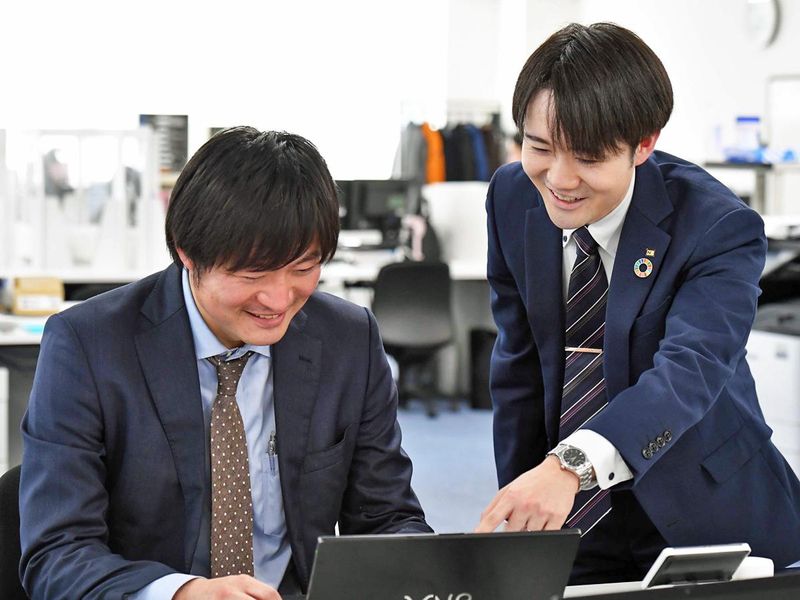 職場環境・雰囲気 | 職場環境 <社員インタビュー> 「新人時代は、取引先からの問い合わせなど、 わからないことも数多くありました。 そんなとき周囲の先輩に相談すると、 すぐに答えてもらえるので、 とても助かりましたね。 当社には、お互いに支え合い、 若手を育てる風土が根付いています」 |