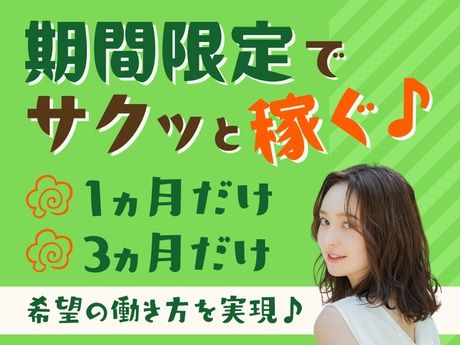 勤務時間 | シフト制 勤務時間 10:00~18:00(実働7h) ◎短期希望OK ◎長期勤務歓迎 ◎週2日~OK! ◎完全自由シフト♪ |