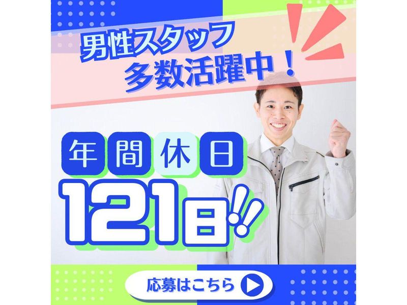 休日休暇 | 休日休暇 完全週休2日(土曜、日曜) ※12月繁忙期に土曜出勤をお願いする可能性有 (2回程度/別途手当支給) 祝日 年次有給休暇(6か月経過後に11日) 年末年始 産休・育休制度 介護休暇 |