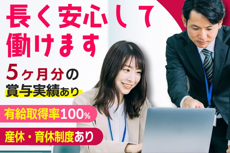 休日休暇 | 【休日休暇】 隔週休2日制(隔土・日・祝) ※セレクト休日(上記に加え、土曜日を月1日休めます) 【長期休暇あり】 ・GW休暇 ・夏季休暇 ・年末年始 【特別休暇あり】 ・産前産後休暇 ・育児休暇 ※年間休日数も増え続けています!ワーク・ライフ・バランスがますます向上します! 【有給休暇について】 有給休暇の取得率が高く、取得のタイミングも個々の希望に合わせて自由に調整可能です。 業務の一区切りがついた時や、プライベートの大事なイベント時(授業参観・入学式・旅行など)は、有給休暇をご活用ください。 |