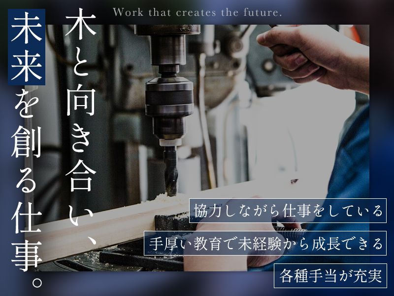 職種/仕事内容 | 仕事内容 / 普通自動車免許があれば応募OK! 木材製造スタッフ 募集! \ …求人のPOINT………………………… 1|OJT制度あり!未経験でも安心 2|賞与年2回&毎年昇給 3|長期休暇あり!残業は月20時間以内 4|和気あいあいとした雰囲気の職場 …………………………………………… 建物内部に使用する 木材加工業務をお任せします! □集成材製造 ―接着、モルダー、溝加工、超仕上げ、 昇降盤、サンダー、単板や木材選別 など □オレフィンシートラッピング材製造 \\ 安心の教育体制 // 現場でのOJT制度で 先輩スタッフが丁寧にレクチャー。 さらに不定期でテーマを決めた研修を行い、 業務に必要な知識が習得できます! 先輩スタッフも未経験スタートの方が多いので 安心して飛び込んできてくださいね。 |