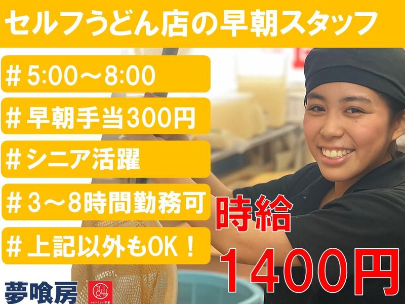 職種/仕事内容 | 仕事内容 《仕事の内容》 セルフうどん店の土日祝早朝勤務スタッフ♪ 国道沿いで朝からお客様も来られる人気のうどんチェーン 【セルフうどんやま沖浜店】で一緒に楽しく働きましょう\(^o^)/♪ ~朝イチの業務内容~ ◆店舗前の看板やのぼりを出す ◆テーブルの上の台拭きや水の入ったピッチャーを準備する ◆ねぎ、大根おろし等の薬味の準備 ◆いなり寿司、おにぎりの準備 ◆だし巻き玉子の準備 ◆トッピングの肉(肉うどん用)の準備 ◆天ぷらの準備 ◆レジの開店準備 ◆出汁の調合、仕込み、再加熱など ~開店後~ ◆レジ対応、接客 ⇒レジ対応と並行して天ぷらの調理を行って頂きます。 ◆洗い場 ⇒お客様が利用後の食器を食洗器にセットし、片付ける うどんを茹でたり、トッピングの材料を切ったりなど、レシピやマニュアルに基づいた シンプルな作業ですので、未経験の方でも安心✨早起きが得意な方、午前中だけ働きたい方にピッタリ♪ 7:30開店のため、それまでは開店前準備、開店後は簡単な接客とお客様対応を行って頂くイメージです! 店内の様子やお客様への気配り・心配りを通して接客スキルもしっかり身に付きます! 調理スキルも身につけながら、ただ『勤めるだけ』でなく、自身の成長に繋がる職場♪ 業務についても先輩スタッフがしっかり優しくサポート! また入社後は本社からもお困りごと相談窓口を設けているのでバックオフィスからのサポートも万全! スタッフが安心して働ける環境を提供いたします(*^^*) |