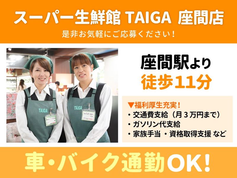 勤務地 | スーパー生鮮館TAIGA(タイガ) 座間店 252-0028神奈川県座間市入谷東2-8-7 |