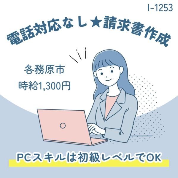 職種/仕事内容 | 仕事内容 電話対応なしの事務ワーク 請求書作成のお仕事です ・フォーマット入力で簡単作業 ・PCは初級レベルでOK ・残業なしで安心勤務 ・17時退社も相談OK ・平日休み・土日祝休み選べます ・ご希望の働き方が可能です ・大型連休もきちんとお休みあり |