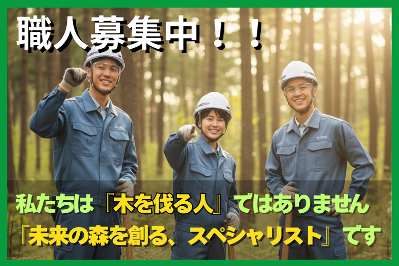 職種/仕事内容 | 仕事内容: ーーあなたの手で、50年後の森をデザインする。 私たちは『木を伐る人』ではありません。『森を創る、スペシャリスト』です。 当社は事業の拡大に伴い、一緒に働く作業員を募集中! 未経験から森の未来をデザインする職人技を身に付けて活躍しませんか? 【仕事内容】 主に山形県内・隣県で活動いただきます! ①林や森に関する業務 刈払い、除草、樹木剪定、木材のチップ化 除伐・間伐などの造林保育、伐採交渉業務 ・林道・遊歩道開設、特殊伐採など ➤特に保育事業は、森林が持つ多面的な機能(水源涵養、土砂災害防止、地球温暖化対策)を維持・強化するための根幹となる作業になります。 ②土木や電力事業といった建設に関する業務 土木工事(河川などの工事) 鉄塔工事(鉄塔の管理)など 事業拡大に伴い、一緒に成長してくれる 林業作業員(正社員)を募集いたします! ーーーーーーーーーーーー |