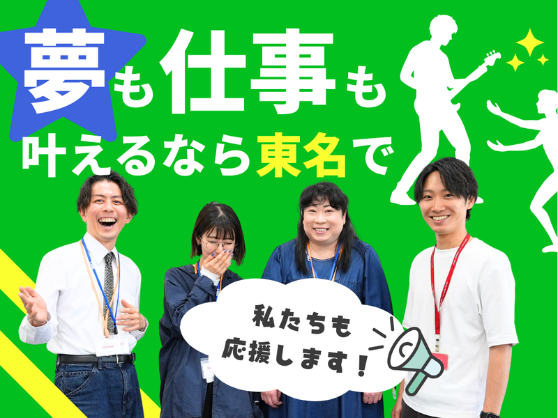 職種/仕事内容 | 仕事内容 ⭐東名が選ばれる理由⭐ ✅とにかく人が良くて働きやすい ✅上場企業の安心感 ✅駅チカで高収入 『面接では肩肘張らずリラックスした雰囲気で ざっくばらんにお話していますよ◎』 ▼仕事内容の概要 ◎インターネットや電気代が お得になるサービスをご案内 ◎お電話でご紹介し興味を 持っていただけたら先輩社員にバトンタッチ ◎マニュアル完備で未経験でも安心スタート ⭐入社後の流れ 未経験から始める方も多いため、 丁寧にサポートしますので安心ですよ! ①導入研修・座学研修(3日間) ②OJT研修(個々の習熟度による) …OJTを経て、いざ実践へ 研修後もリーダーや先輩スタッフが サポート フォローするので安心ですよ。 わからないことはスグに聞ける環境です。 ⭐オフィス環境について ■オフィス内に自動販売機を設置 ■窓からの眺めも◎ ■空調完備で年中快適空間 ■休憩スペースあり ソファ、椅子、テーブルなど 自由に使えるのでリフレッシュも◎ - ⭐弊社の自慢は、「人」です⭐ ▼採用HPもぜひご覧ください▼ https://www.toumei-recruit.com/part-time-job/ - ⭐1年以上の継続勤務歓迎⭐ 覚えた業務を活かして対応の幅が広がると、 成果に応じた手当や昇給のチャンスも◎ 長期で働くことで収入面のメリットを感じやすく、 頑張った分だけしっかり評価されます。 実際に1年以上続けている仲間も多数在籍! ⭐株式会社東名について⭐ 株式会社東名は、インターネットなど 通信サービスを企業向けに提供している 東証上場企業です。 全国の中小企業を支える仕事で、 安定した経営基盤があるのも安心ポイント。 難しい知識は不要で、未経験から スタートしているスタッフもたくさんいます。 |