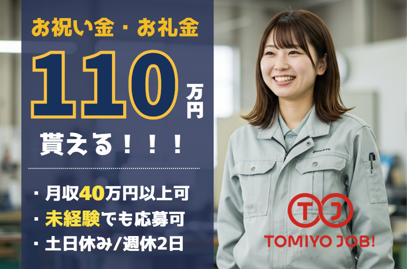 対象となる方 | ■求める人物像・資格 *<こんな方歓迎します!!>* -車が好きな方 -モノづくりが好きな方 -未経験だけど興味がある方 -裏方でモクモク作業がしたい方 -ブランク・久しぶりの仕事復帰の方 -フォークリフト運転技能講習修了者であれば尚可 …………………………………………………………………… 日本語能力試験 N2以上 日本語の読み書き(漢字・かな)必須 JLPT N2+ / Must read & write Japanese (kanji & kana) …………………………………………………………………… |