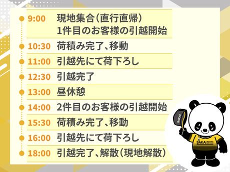 職種/仕事内容 | 仕事内容 ☆☆☆ おすすめポイント ☆☆☆ ◆【自由シフト】週1日~OK!働きたい日の前日12時迄に申請で◎ ◆【日払い制度あり】スマホ決済アプリで給与受取できる! ◆【未経験OK】2~5人のチーム制◎研修も充実! ◆【交通費支給】勤務地多数!直行直帰可で通勤ラクラク♪ ◆【AI面接実施中】スマホ1つで面接まで完結! ☆☆☆ 仕事内容 ☆☆☆ 【お客様のご家財の梱包・運搬、駐車対策】 お客様のご家財を2~5名のチームで運びます。 はじめは軽い段ボールを運んだり、 建物内の養生(ブルーシートを貼る)など、 カンタンな軽作業からスタート。 重いご家財については複数名で運ぶので、 未経験の方も安心ですよ◎ \お客様へまごころこめてサービスをする。/ 引越はお客様にとって、 人生の大切な【節目」です。 お客様の立場に立って、 まごころこめてサービスを 【提供】することがサカイの品質です。 ☆☆☆ 好きな時に働けます♪ ☆☆☆ シフトは働きたい日の【前日12時まで】に、 スマホで申請して決定します。 「明日、予定が空いちゃった…」 「来週飲み会だから稼がなきゃ…」 そんな時にスグに働けます◎ 週1回だけ、月に数回だけ、短期間だけ…等、 自由に働き方を選択できますよ♪ ☆☆☆ 未経験の方でも安心な充実した研修あり◎ ☆☆☆ 初日は自社の研修施設にて、 仕事の流れや実際の仕事イメージをつかむためのレクチャーを 2時間ほど受けていただきます! 制服の着用方法から資材説明・段ボール・包み方等の レクチャーもしっかりおこないます◎ |