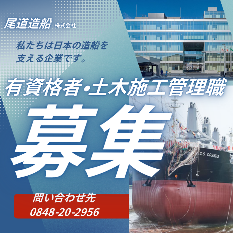 職種/仕事内容 | 仕事内容 【求人のポイント】 ‥…━━━━━━━…‥・ ✅年間休日123日♪ ✅賞与6ヵ月分! ✅U・Iターン大歓迎! ✅造船会社での安定環境 ✅土木建築のスキルを存分に活かせる ✅今後5-10年は大規模な設備更新が継続的に発生 ✅約半年~1年間の丁寧なOJT研修あり ‥…━━━━━━━…‥・ ―――――――――――――――――――― 【仕事内容】 造船所の設備新設・更新・修繕工事の 施工管理業務がメインです。 尾道造船所および尾道・向島・松永の 各工場において、 工場設備の新設・更新に関する 施工管理全般をご担当いただきます。 ―――――――――――――――――――― 【具体的な業務内容】 ✅工場設備の新設・更新・修繕工事の 施工管理 ✅施工業者との見積り交渉、工程調整 ✅社内関係部署との連携、調整業務 ✅工事の進捗・品質管理 ✅図面(CAD)のチェックや修正 ✅工場内の設備点検、不具合箇所の確認 ―――――――――――――――――――― 【先輩スタッフの声】 「前職で培った土木建築の知識を活かして、 造船所の施設をより良くしていきたいと思い 入社を決意しました。 業者への細かな指示出しや打ち合わせ、 造船所内部門と業者間の調整など、 スムーズに工事を進められたときに やりがいを感じます。」 ―――――――――――――――――――― 【一日のスケジュール】 日によって業務は決まってはいませんが、 一例として次のようなことをしています。 ⏩現場の確認と工程確認・関係部署との調整 ⏩施工管理部門から見積依頼を受けたら業者 へ連絡、一緒に現場確認し見積もりを取る ⏩作業がないときは、写真整理や 図面(CAD)の確認・修正 他、工場内にて不具合箇所の確認作業 |