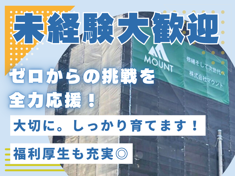 職種/仕事内容 | 仕事内容 関東一円で修繕工事を行う 「株式会社マウント」の 現場代理人の募集です! ――――――――― 【 仕事内容 】 ――――――――― 足場設置~工事終了まで 責任を持って工事の管理を行うのが 現場代理人の仕事。 現場に常駐し お客様とコミュニケーションを取りながら 工程管理を行います。 やる気があれば未経験から チャレンジできます! 現場で経験を積みながら 資格を取ってスキルアップしていける お仕事です。 ////// ここがポイント!! ////// ✅未経験からしっかり育てます♪ ✅充実の福利厚生! 資格取得支援・報酬金あり ✅転居も安心◎ 引っ越し・帰省のサポートあり / あなたのご応募お待ちしております✿ \ |