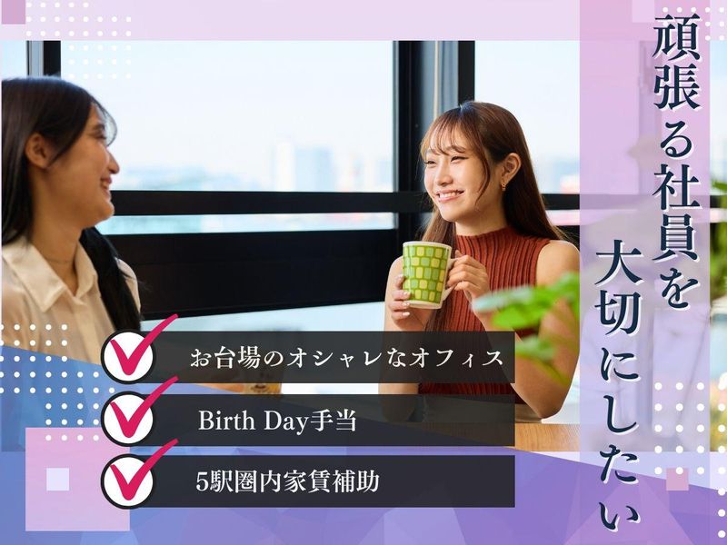 対象となる方 | 求めている人材 【応募資格】 ・基本的なパソコン操作ができる方 ・40歳未満の方(長期キャリア形成のため) <弊社で活躍している人材> ・成長意欲の高い方 ・人と話すこと、コミュニケーションをとることが好きな方 ・何かしらの営業経験や接客経験がある方 ・パソコン作業や操作に慣れている方 <こんな方は大歓迎!> ・web制作進行経験 ・Canvaを用いたデザイン制作の経験 ・Adobeイラストレーターを用いたデザイン制作の経験 ・WordPressの使用経験 ・Google Analytics4の使用経験 ・Google Search Consoleの使用経験 ・Google Tag Managerの使用経験 ・コーディングの経験 ※必須ではありません ◎これまでの経験やスキルは関係ありません。あなたの意欲を重視しています!ぜひご応募ください! |