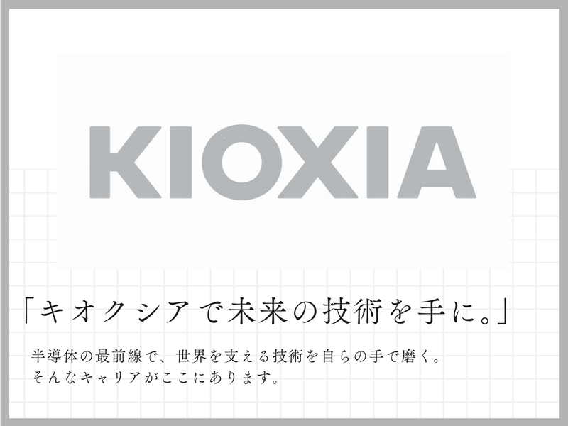 対象となる方 | 求めている人材 こんな方を求めています✨ ✅地元で腰を据えて働きたい方 四日市・岩手といった、 地域に根ざした世界有数の製造拠点で、 正社員として安心して働けます。 転勤がないので、地元で安定的に 働きたい方にピッタリ✨ ✅「やっぱり地元が好き」と思っている方 学生時代に県外に出たけれど、 「地元に戻って働きたい」 という気持ちが強くなった。 そんなあなたを、 キオクシアは歓迎します。 地元で世界に誇れる技術に 携わるやりがいを、 ぜひ実感してください。 ✅コツコツ型の努力を評価されたい方 派手な自己主張よりも、 日々の積み重ねを 大切にする方に向いています。 「黙々と作業に取り組むことが得意」 「責任感を持って着実に進めたい」 そんな姿勢がしっかり評価される 風土があります。 ✅新卒で入った会社を辞めてしまったが 再スタートしたい方 「1社目はうまくいかなかったけど、 まだまだこれから」と感じているあなた。 キオクシアには、 再チャレンジを応援する環境があります。 研修やサポート体制も整っているので、 気持ちを切り替えて、 安心してリスタートできます。 |