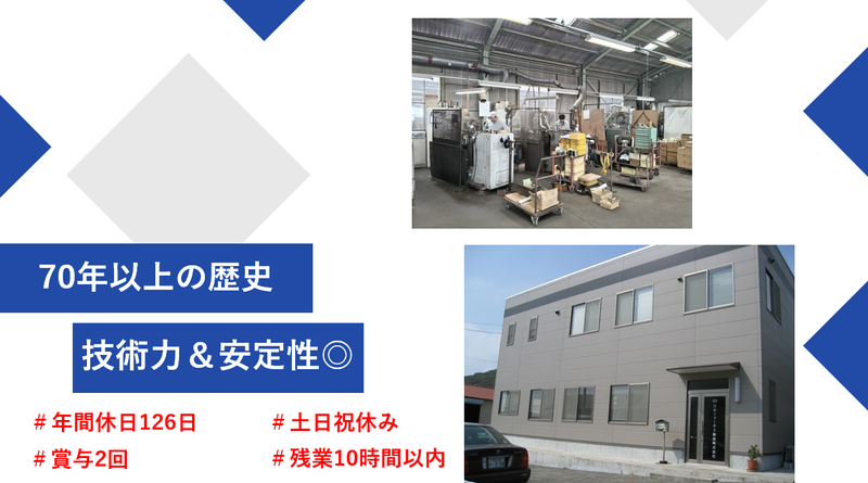 職種/仕事内容 | 仕事内容 \\✨この求人のアピールポイント✨//  ̄ ̄V ̄ ̄ ̄ ̄ ̄ ̄ ̄ ̄ ̄ ̄ ̄ ̄ ̄ ̄ ̄ ̄ ̄ ✅国内トップクラスの技術力! 70年以上の歴史ある安定企業◎ ✅年間休日126日! 土日祝休みでプライベート充実♪ ✅残業月平均10h程度◎ ワークライフバランス抜群の環境! ✅賞与年2回!頑張りはしっかり還元 ✅転勤なし! 腰を据えて長く働けます! ──────【仕事内容】────── 汎用工作機械を使用した工業用部品の 製作業務をお任せします。 <具体的なお仕事> ⏩汎用工作機械の操作 └フライス盤、旋盤、ボール盤 などを用いた部品製作 ⏩工業炉や燃焼装置用部品の製作 └図面を読み取り、精密な加工を実施 ⏩品質チェック └加工後の製品検査も担当 ⏩工作機械のメンテナンス └機械の調整や点検も行います ⏩溶接作業(経験者の方) └溶接スキルも 活かせる場面があります ================= 【会社について】 ================= 当社は工業用燃焼装置分野において 国内有数の技術力を持つ企業です! 主に熱エンジニアリングを中心に、 工業用燃焼装置では 国内トップクラスのシェアを誇ります。 設計から製造、販売までを 一貫して手掛け、安定した 経営基盤のもと、日本の産業の発展を 支えてきました。 NFKホールディングスグループの 中核企業として70年を超える歴史と 実績を積み重ね、確かな技術力で 多くのお客様から信頼を いただいています♪ 私たちが大切にしているのは、 ✅確かな技術力で、 高品質な製品を生み出すこと ✅チームワークを尊重し、 より良いものづくりを目指すこと ✅社員一人ひとりが安心して 長く働ける環境を整えること 今回は、事業好調のための増員募集です。 安定した環境で、ものづくりの プロとしてさらに技術を磨きませんか? \✨キャリアアップも目指せます✨/ ━━━━━━━━━━━━━━━━━━ まずは工作機械のスペシャリストとして ご活躍いただきます。 将来的には、培った技術と知識を活かし、 工程改善の提案や若手育成など、 製造現場の中核を担う存在として ステップアップすることも可能です。 |
