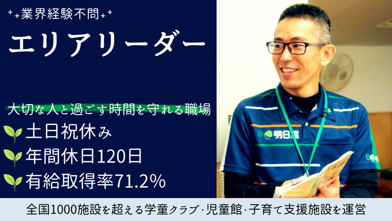職種/仕事内容 | 仕事内容 \業界未経験からの挑戦歓迎♪/ \新天地での転職も全力応援!/ ◆社会人経験があればOK! ◆浜松市担当エリアリーダー募集 ◆社宅制度あり ◆引越し費用も一部会社負担(※規定あり) ◆県外・遠方からのご応募も大歓迎! ☆☆☆20代~40代活躍中☆☆☆ ━ 仕事内容 ━ エリアマネージャー補佐として ◇担当施設の巡回・サポート ◇スタッフや施設長との面談 ◇自治体とのやり取り・調整 ◇求人対応や採用面接 ◇年間計画書や書類作成 ◇現場の課題ヒアリングと対応 ◎“施設がうまく回る”を支えるお仕事! ◎子どもたちや保護者と関わる場面も♪ 複数名のエリアリーダー在籍の為、 先輩社員のサポート体制充実!! 未経験でも安心して働けます♪ ━ やりがいPOINT ━ 子どもたちの笑顔のそばで、 「ありがとう」の言葉を もらえるやりがいある仕事。 支える立場として、 現場と一緒に成長できます☆ ━ スタッフの声 ━ (入社2年目/Aさん) 現場の課題に耳を傾け、 働く人が安心して働けるよう サポートできることに 大きなやりがいを感じています! ━ 入社後のサポート ━ ◎OJTで約3ヶ月しっかり同行 ◎現場での1~2週間研修あり ◎業界未経験でも理解が深まる体制です ━ 安心の待遇・制度 ━ ■社会保険完備 ■交通費支給(規定あり) ■賞与・役職手当あり ■社宅制度あり(※規定) ■引越し費用負担あり(※規定) ■社内イベント・観戦優待なども♪ \☆こんな方にピッタリ☆/ □ 子どもに関わる仕事がしたい □ 裏方として支えることが好き □ 新しい土地でスタートしたい □ 地域に根ざした仕事がしたい 【エリアリーダー/社宅あり/ 引越し支援あり/児童クラブ/ 未経験OK/運営サポート/事務/ 子育て支援/転職歓迎】 |