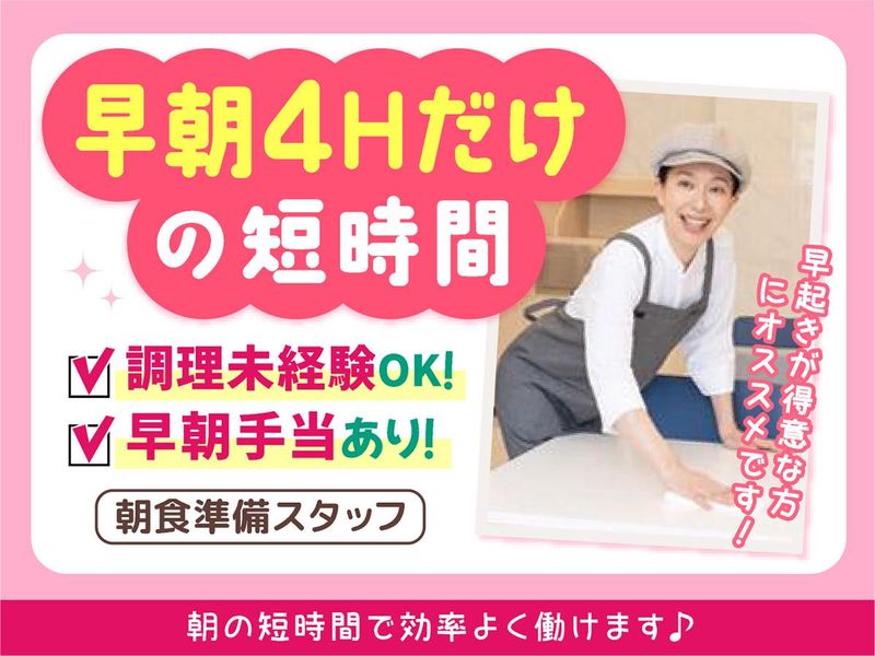 対象となる方 | 求めている人材 朝だけのお仕事なので ▶掛け持ちで働くWワーク・フリーター ▶授業前に働く学生 ▶早起きが得意なミドル・シニア など幅広い世代のスタッフが活躍中! ◎未経験者歓迎 ◎主夫・主婦歓迎 ◎料理が好きな方歓迎 ◎明るい挨拶ができる方 ◎WワークOK ◎大学生OK ◎扶養控除内OK ◎年齢不問 ◎家事・育児経験が役立つ ✨20代、30代、40代、 50代、60代の幅広い男女活躍中! +*―― +.――+.――+.――+. ――*+ 今回募集するお仕事では、 【カフェ】や【レストラン】など 飲食店での業務経験を活かせます。 【ホテル】や【旅館】など 宿泊施設での朝食準備、食事手配の 経験がある方は即戦力に! +*―― +.――+.――+.――+. ――*+ |
