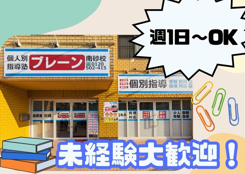 職種/仕事内容 | 仕事内容 ☆+..+☆+..+☆+..+☆+..+☆+..+☆ ✅塾講師デビューの方も大歓迎! ✅持ち帰り業務なし! 大学生活躍中◎ ✅週1日・1コマ(90分)からOK♪ ✅研修充実&社員が2名いるので安心! ☆+..+☆+..+☆+..+☆+..+☆+..+☆ ✨ 未経験から始められる塾講師 ✨ 小学生を対象に、講師1人・生徒3名を担当していただきます!一人ひとりの目線に合わせた指導方法で、生徒の成長をサポートしてください。 入社後は授業見学をはじめ、充実の研修制度をご用意しているので、未経験の方も安心して始められます! ⭐指導科目は国語、算数、英語の中から相談の上、決定します♪ ※今後中学受験生など理科社会を扱う可能性あり ⭐持ち帰り業務なし!私服でOK♪ / 社員2名在籍!安心のサポート体制◎ \ アルバイトパートで活躍中の20代女性が4名、正社員2名の少人数の職場です!社員が2名もいる個別指導塾は少ないので、未経験の方も安心して働けます◎ 講師同士の仲が良いのが自慢!一緒にご飯に行くこともある、アットホームな雰囲気です♪ ✅『個別指導塾ブレーン』とは… 大阪・京都・東京・神奈川に展開する、地域密着型の個別指導塾です。 地域で一番信頼され・愛される塾を目指して、生徒一人ひとりの可能性を大切にしています。 「南砂校」は、今年オープンしたばかりの新しい個別指導塾です! |