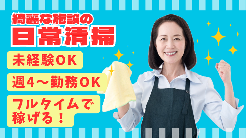職種/仕事内容 | 仕事内容 綺麗な市立複合文化施設での カンタン日常清掃をお任せします☆ *ホール・客席ホール *ロビー *貸室 *トイレ(男女) *廊下階段 などの清掃をお任せします。 ▶拭き掃き、ごみ回収など ※施設内はエレベーターでの 移動なので体に負担なく働けます♪ 難しい作業はありません! 丁寧な研修があるので未経験の方も 安心して始められます♪ 綺麗好きな方、掃除が好きな方に オススメのお仕事です◎ |
